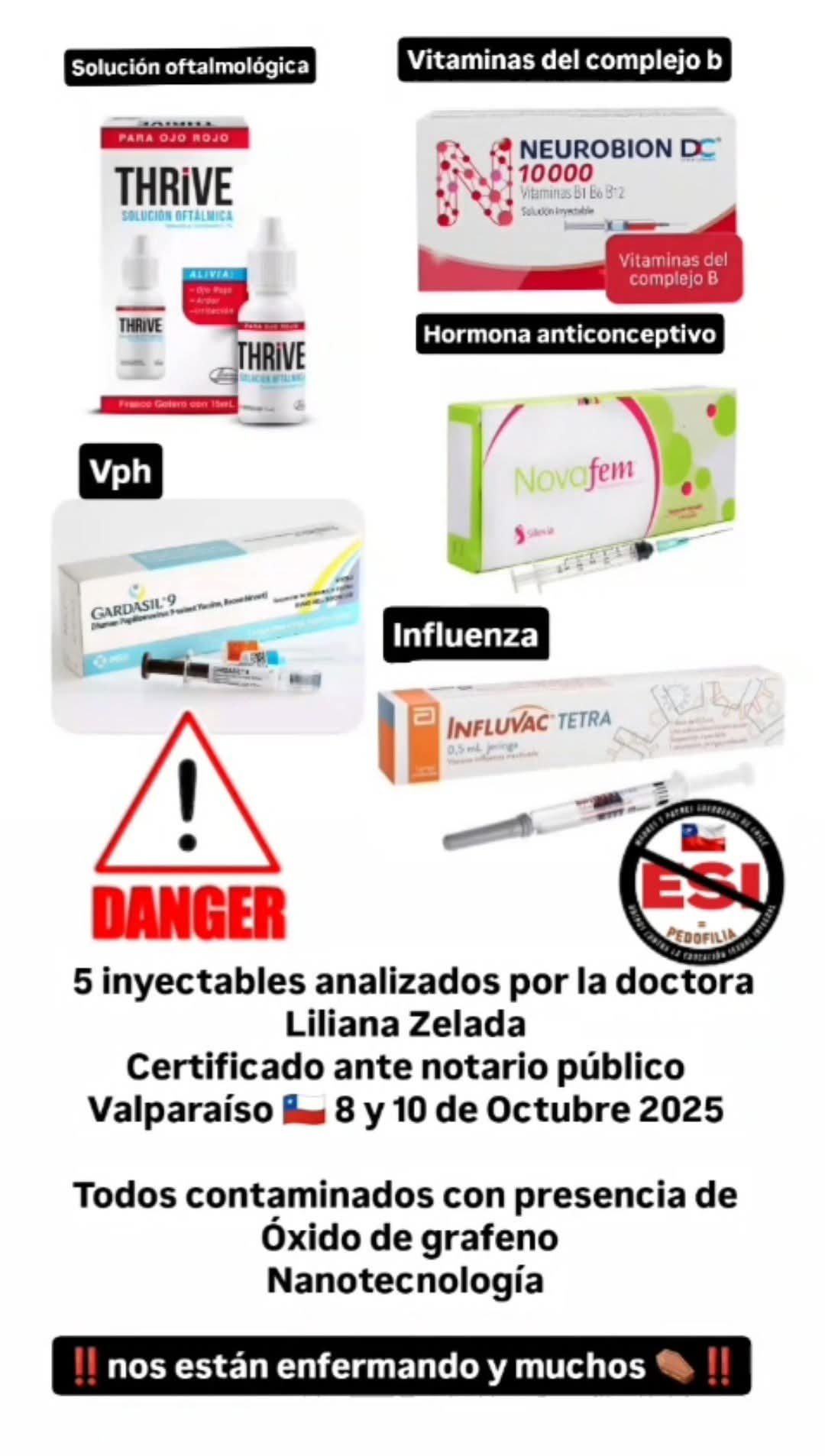 Santiago 01-11-2025, Finalmente llego el día donde publicaremos el análisis mediante microscopio de varios inyectables que circulan en Chile, realizado por la doctora Liliana Zelada de Bolivia, los días 6 y 8 de octubre en Valparaíso la notaria donde se realizarón los análisis esta ubicada en Calle Prat #856 Notaria "Carlos Wendt", Se anaizarón los siguientes farmacos: